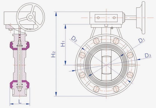 1、D371X蝶閥/UPVC渦輪蝶閥管徑:90MM--500 MM
